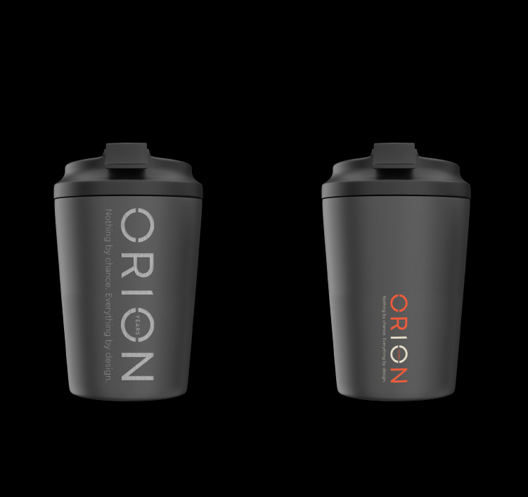 Visually, we designed a bespoke 10th anniversary mark, turning the ‘I’ and ‘O’ from the Orion name into a graphic ‘10’ that echoed their masterbrand horizon-line logo we developed. This motif animated beautifully in intros and outros, and was applied across a suite of celebratory materials, from event decks and banners, to sports tees, etched Fressko coffee cups and water bottles (which sparked a who-could-get-one-first frenzy!), and high-quality laptop backpacks. We designed pieces that were beautiful and genuinely useful, gear the team would want to wear and keep.